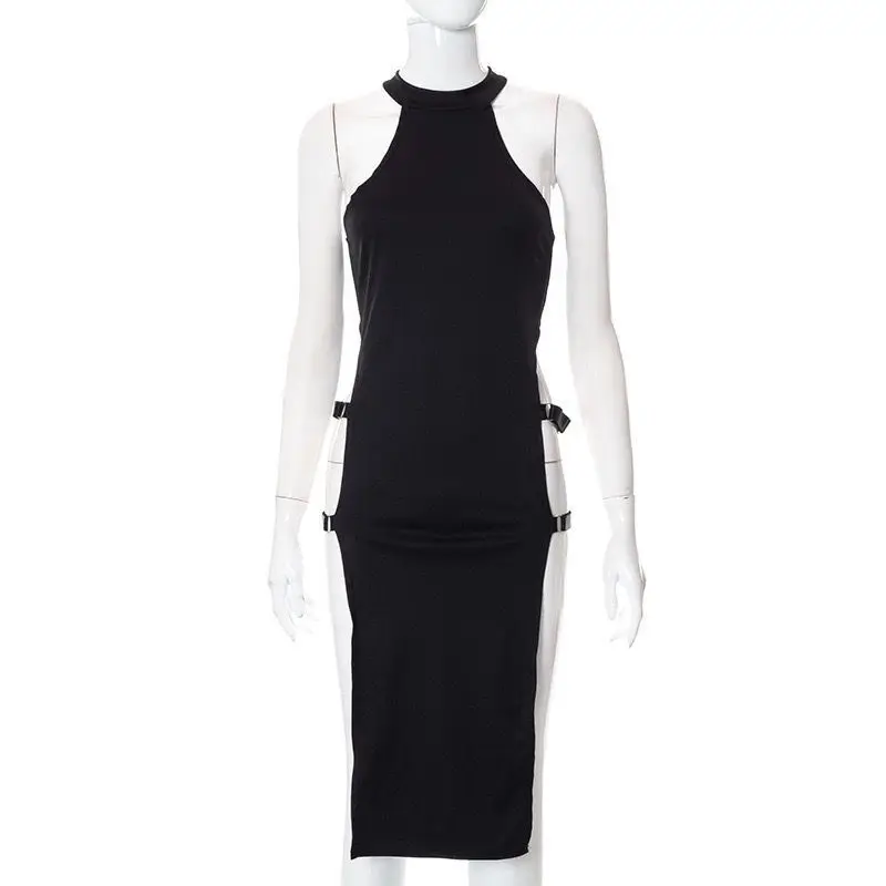 Sexy Outfits For Elegant Women Y2k Dresses Sleeveless Round Neck Split Shows Leg Bodycon Long Dress Gothic Girl Role Play Dress